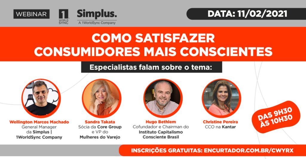 Os consumidores estão cada vez mais conscientes e satisfazê-los se tornou um grande desafio. Por isso, o webinar Como Satisfazer Consumidores Mais Conscientes vai reunir grandes especialistas do mercado para falar sobre o tema. Será no próximo dia 11 de fevereiro, às 9h30.
